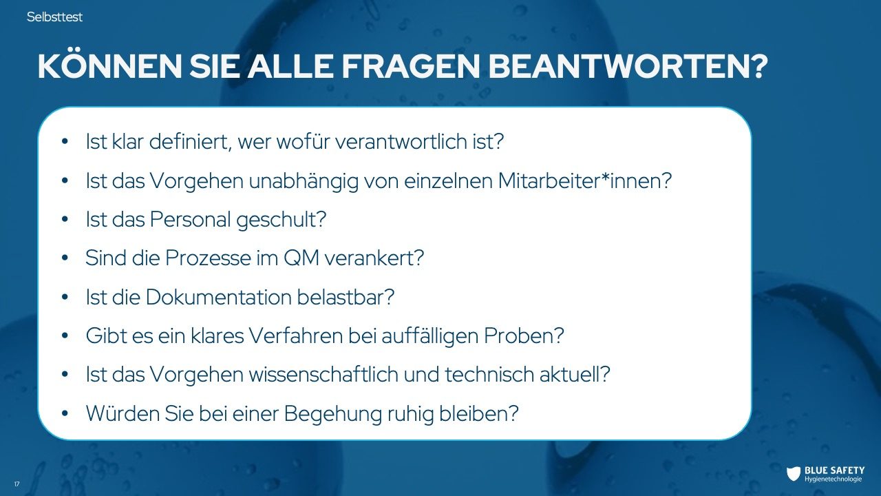 Wenn Sie hier auch nur bei einer Frage unsicher sind, lohnt sich ein genauer Blick auf Ihre aktuellen Prozesse. Nutzen Sie unseren kostenlosen Hygiene Check und erhalten Sie eine fundierte Einschätzung Ihrer Wasserhygiene.